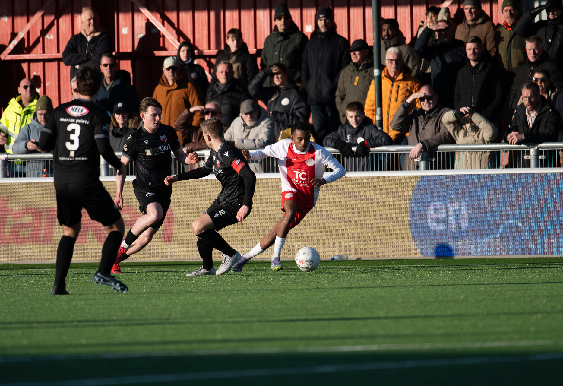 Invallers Gerwin van de Groep, Chahine van Bohemen en Sem Scholten brachten nog wel vuur, maar ook zij konden het tij niet keren. Zo wist het IJsselmeervogels wat na de winterstop wist te imponeren geen vuist meer te maken, waarna scheidsrechter Visser na 6 minuten extra tijd besloot een einde te maken aan de miserie. 'Gelukkig' wisten concurrenten Excelsior Maassluis en HFC geen punten te pakken, terwijl ACV 1 punt uit het vuur wist te slepen tegen de blauwe buurman. RKAV Volendam en Katwijk moeten het inhaalduel van deze speelronde nog spelen.