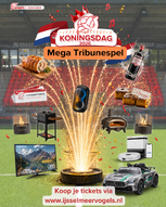 Het Mega Tribunespel is uitgegroeid tot een vaste waarde op Koningsdag bij IJsselmeervogels. Koop een plaats op de tribune en maak kans op aantrekkelijke prijzen!