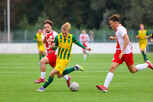 Vorige week trokken de spelers van de O21 de wedstrijd tegen NEC, na een achterstand, naar zich toe met uiteindelijk een verdiend punt en applaus vanaf de tribune. Rida Drissi vatte als trainer voor de wedstrijd in de kleedkamer de turbulente voorbereiding treffend samen: trots op de spelers hoe ze zich de afgelopen weken en in de openingswedstrijd hebben laten zien: als team, gedreven, met plezier en voetballend de tactiek uitvoeren. ‘Neem dit mee in de wedstrijd vandaag tegen Fortuna Sittard’. ‘De mogelijkheden liggen in de kantwisseling op de flanken, waar ruimte ontstaat, door het slecht kantelen van de Fortunezen’. Die kansen lagen er zeker, maar de tegenstander had een andere tactiek dan de Nijmegenaren vorige week, waar meer ruimte en tijd was om te voetballen.