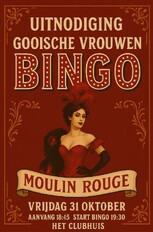 Dames! Zet vrijdagavond 31 oktober alvast in je agenda, want dan verandert het Clubhuis van IJsselmeervogels in de fameuze Moulin Rouge. Het is namelijk weer tijd voor de enige echte Gooische Vrouwen Bingo!