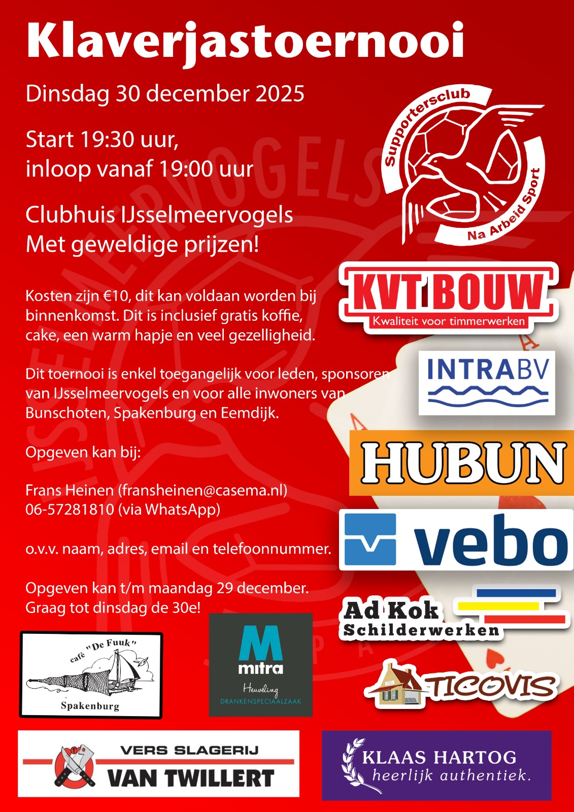 Dinsdag 30 december organiseert Supportersclub N.A.S. het altijd gezellige klaverjastoernooi.